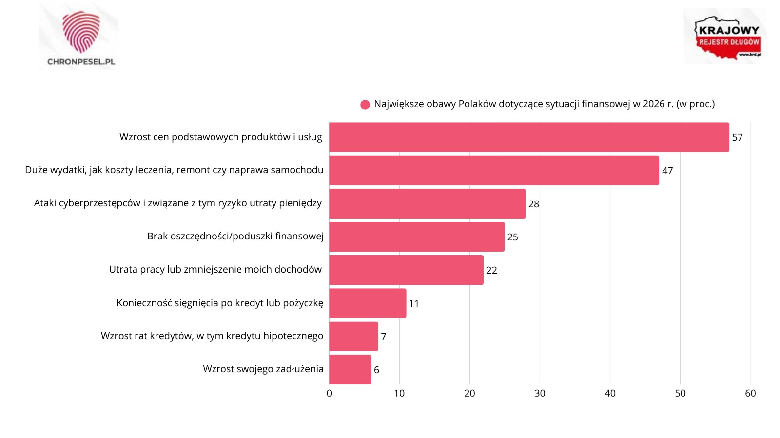 Zmiana ta znajduje odzwierciedlenie w nastrojach konsumentów. Jak wynika z badania „Portfele Polaków u progu 2026 roku: oszczędności i obawy”, przeprowadzonego na zlecenie serwisu ChronPESEL.pl i Krajowego Rejestru Długów, 28 proc. respondentów wskazuje ryzyko utraty pieniędzy w wyniku cyberoszustw jako jedno z największych zagrożeń dla swoich finansów. To więcej niż obawa przed brakiem oszczędności (25 proc.) czy utratą pracy lub spadkiem dochodów (22 proc.). Wyżej na liście lęków znajdują się jedynie inflacja (57 proc.) oraz niespodziewane duże wydatki, takie jak koszty leczenia czy remontu (47 proc.).